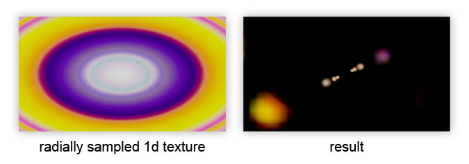 A final improvement can be made by modulating the ghost colour radially according to a 1D texture: